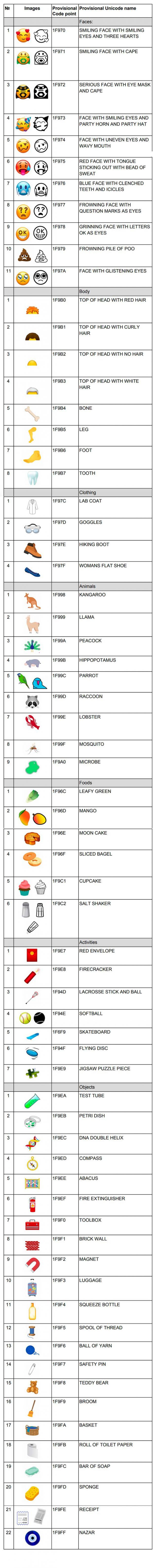 La lista incluye 67 emojis con más animales, prendas de ropa o partes del cuerpo. Estos nuevos emojis se sumarán a los ya existentes y nos servirán para expresar lo que con palabras no podemos describir, además de que hacen de la experiencia algo más que divertida.